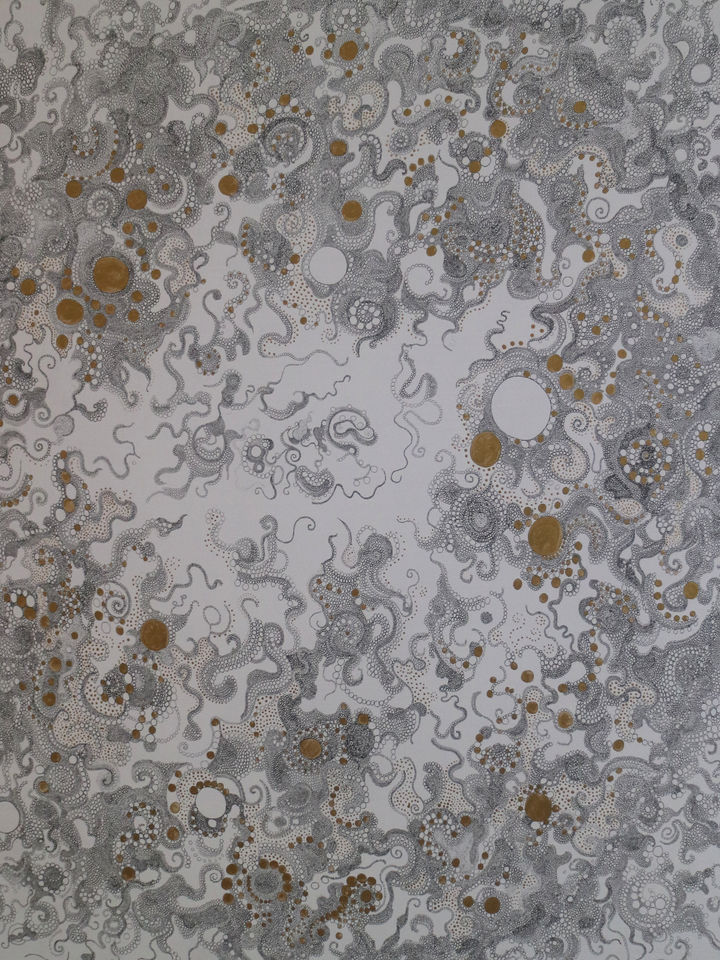 But my interest in Mandala art as a form of meditation has definitely been key to informing some of my abstract pieces here. And, at the same time, I have always wanted my art to be more than just repeating traditions or walking well trodden paths.